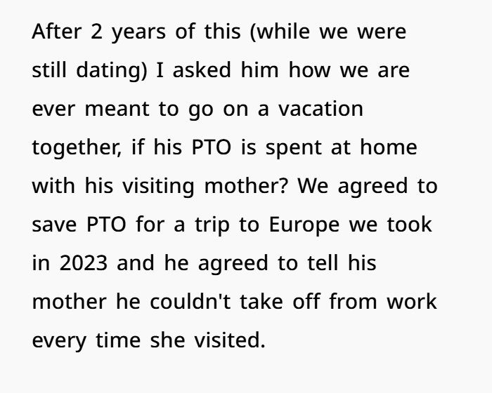 It is clear that the husband neglected his wife’s feelings when he took paid time off (PTO) to go climbing with his mother, even though he knew she was having surgery. Emotional neglect in relationships doesn’t always show up as mean behaviour or yelling. It often comes in the form of not showing up, putting your partner first, or meeting their basic emotional needs. Psychology Today talks about how this kind of behaviour can hurt trust and make people feel even more alone in their marriages over time.