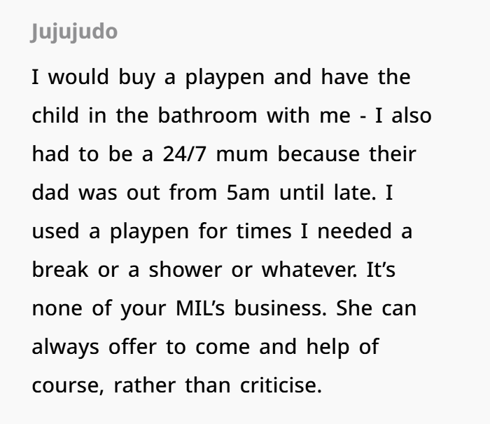 The responses on Mumsnet showed that people understood this. Most of the people who commented told her she was doing the right thing, had similar experiences, and thought the MIL was wrong to judge her. Some people even reminded her that what she was doing wasn’t just okay; it was important for her to stay alive because of the physical demands of being late in her pregnancy.